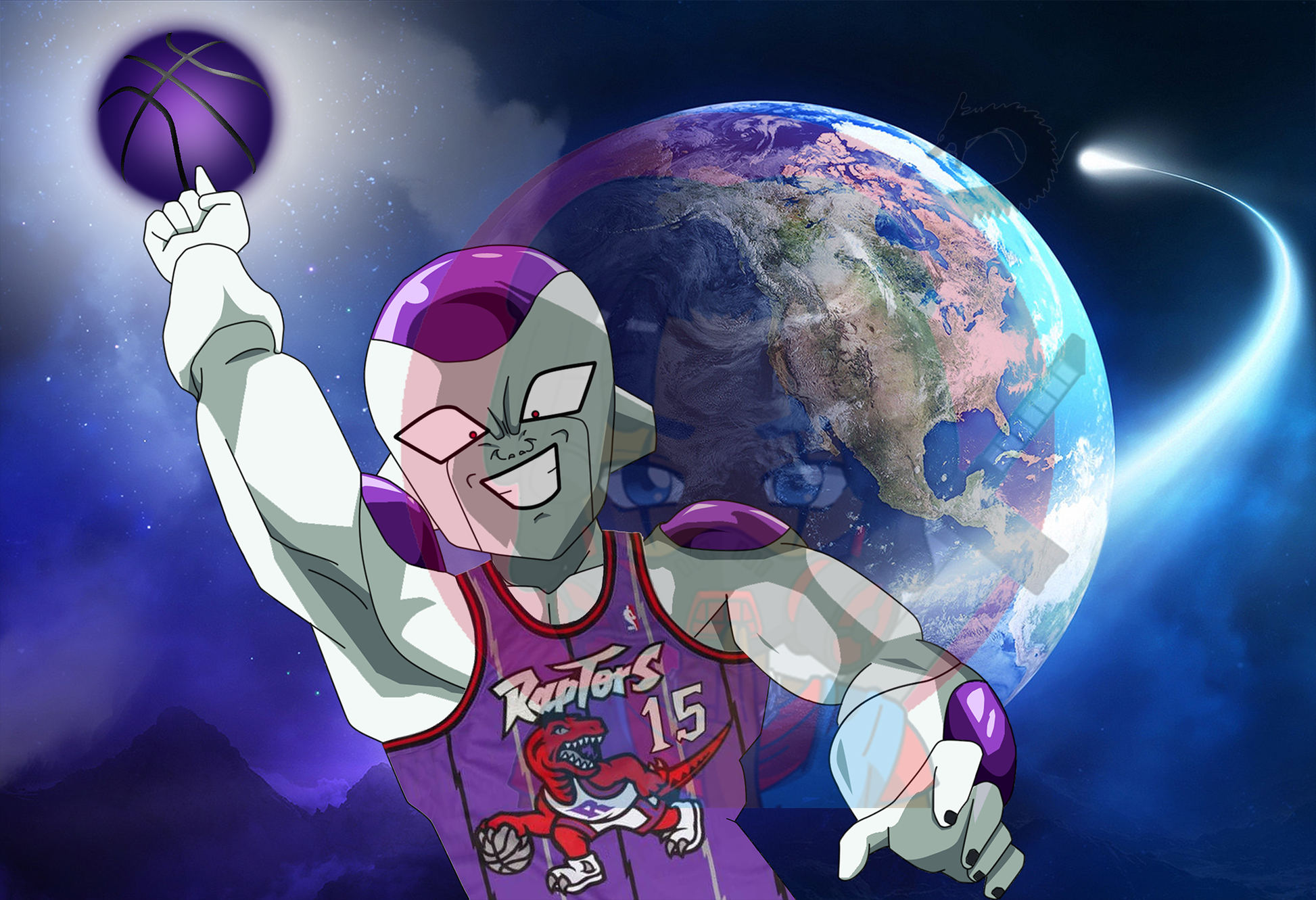 This custom-designed poster features a galactic-themed villain concept from a previous client.